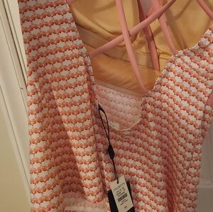 Talbots UPF 50+ New With Tags Vibrant Peach and White Bathing Suit Top