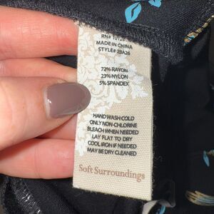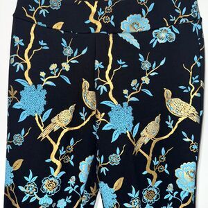 Soft Surroundings Chinoiserie Peacock Printed Pull On Pant - Black/Gold/Blue M. This item is pre-owned in excellent condition.