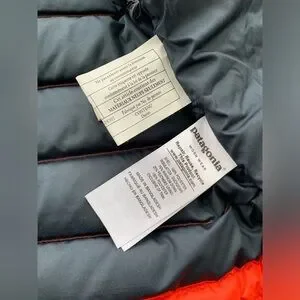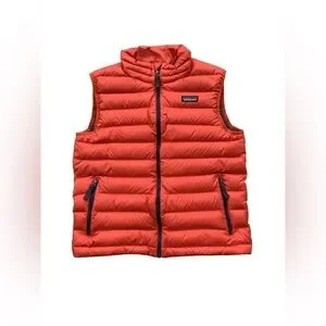 Patagonia size large, boys size 12, bright orange down sweater puffer vest.
