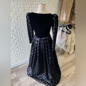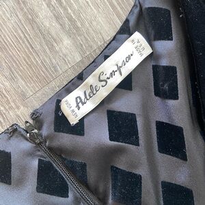 Vintage 1960s Adele Simpson Black Velvet Diamond Detailed Satin Skirt Full Gown, No Tag Size, XS/S based on measurements—please refer to them below to ensure your preferred fit 🤍 small, hard to notice on front bottom hem—shown in last photo