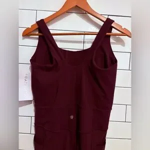 New $129 Athleta Salutation 7/8 Bodysuit Spiced Cabernet Red L