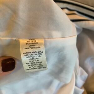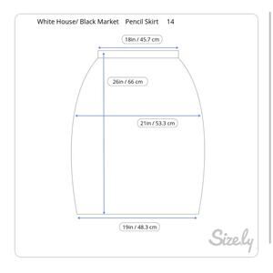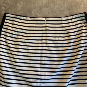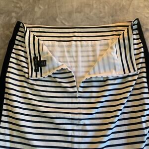 Keywords: White House Black Market, pencil skirt, striped skirt, career skirt, womens skirt, size 14, business casual, office attire, black and white, button detail, classic style, work wear