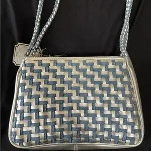 Warren Reed Stylish Blue and White Woven Handbag