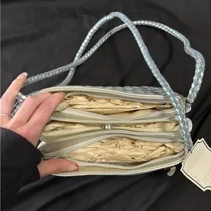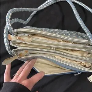 Elevate your style with this chic woven handbag. Featuring a stunning blue and white pattern, this bag is perfect for any occasion. Its elegant design and versatile colors make it a must-have accessory.