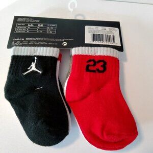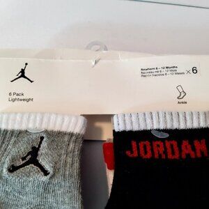 Jordan Baby 6 Pack Lightweight Ankle Socks~ Gray, White, Red & Black 6-12 Months