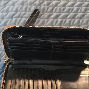 Michael Kors Tan and Black Logo Wristlet
