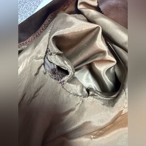 Elevate your style with this classic brown suede jacket. Perfect for any occasion, this jacket offers both comfort and sophistication. Vintage brown suede jacket with belt, men’s size L. See pics for approx measurements. No tags, some minor wear marks, lining in one sleeve is ripped, could be mended easily. Awesome condition for age of coat.