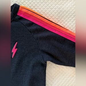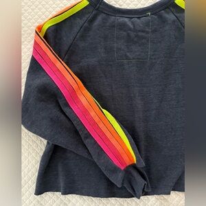 Aviator Nation Bolt Cropped Five Stripe Sweatshirt in Navy w/Neon Stripes SZ L