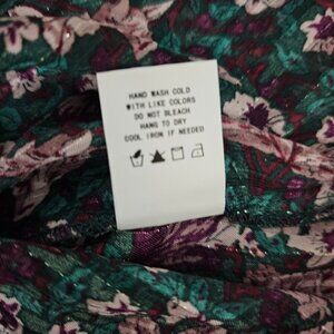 Melloday Long Sleeve Semi Sheer Floral Purple And Green Button Up Blouse NEW