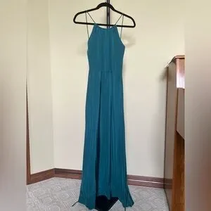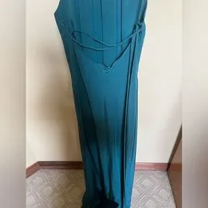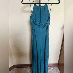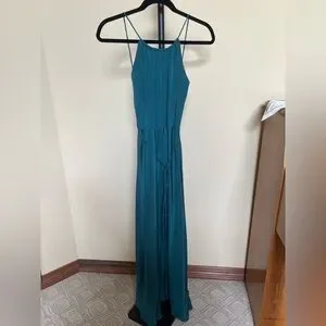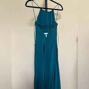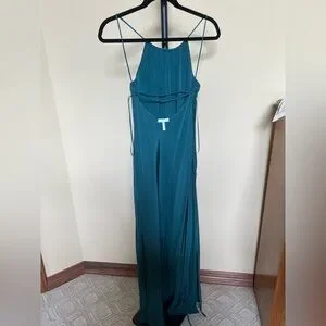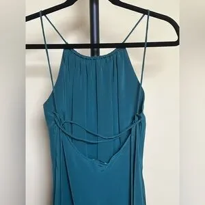 Leith Dress Maxi Long Gown 100% Silk Teal Size M