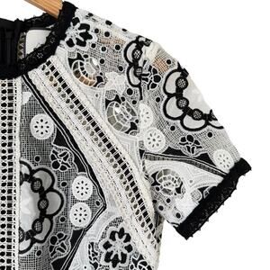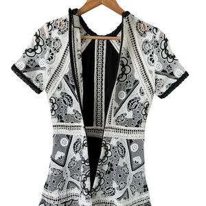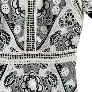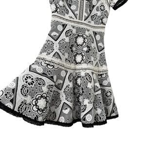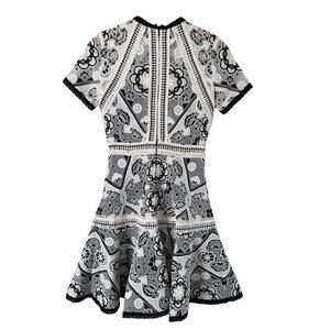 Alexis Emiliana Fit & Flare Mini Dress in Black and White Diamond Lace, XS