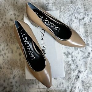 NIB Calvin Klein Nita Leather Heeled Pumps sz 6.5 Nude Desert Sand