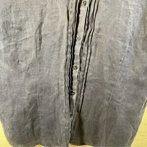 August silk women 100% linen navy blue button up shirt sleeve shirt breathable