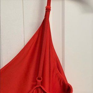 H&M Red V Neck Spaghetti Strap Stretch Ruffle Tank Top Size M