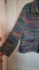 Vibrant striped jacket with button closure. Features multiple colors for a bold look. Fits more like a Large.