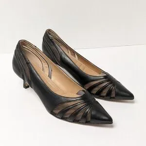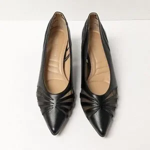 Adrienne Vittadini Women's Black Leather Mesh Pointed-Toe Heels