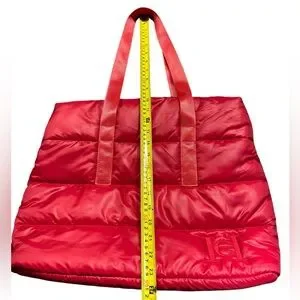 CAROLINA HERRERA Logo RED Puffy Quilted TOTE Shoulder Gym Bag Good