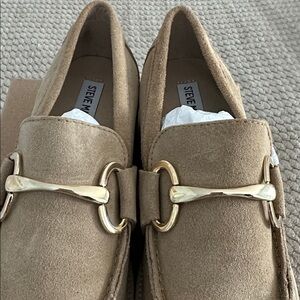 BNWT Immaculate Steve Madden Beige Suede Loafers with Gold Detail