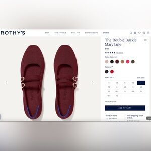 Rothy’s “The Double Buckle Mary Jane” flats in color “Cabernet”. Size 7. Worn less than 3 times. Like-new condition. Retails for $165. I purchased new from Rothy’s. Chic and perfect for fall. Would be great for travel as they’re so comfy for walking and pack easily. I have so many flats and just never wore these so I’m letting them go but they fit perfectly (I’m a size 7) and were crazy comfortable for the couple of times I wore them.