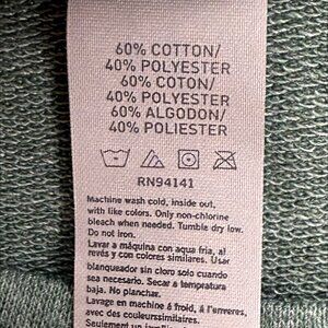 60% cotton / 40% polyester. French terry material. Relaxed fit.