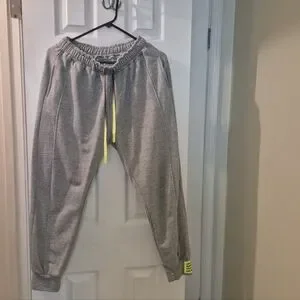 Comfortable and stylish gray jogger set with pockets and functioning draw strings. Unique sewn on coordinating patches.