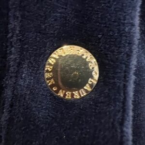 Lauren Ralph Lauren Velour Velvet Jacket Womens Large Blue Gold Buttons Comfy