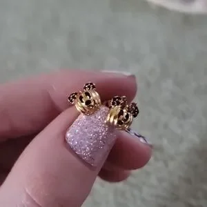 Delightful gold stud earrings featuring a playful mouse icon design. Ideal for adding a whimsical touch to your ensemble.