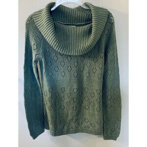 Croft & Barrow Open Knit Turtleneck Sweater Green Size Small