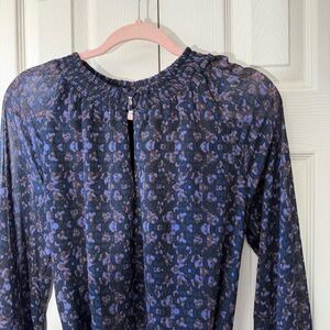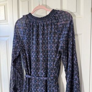 Evereve Women’s Size Large Hollis Black & Purple Chiffon Long Sleeve Dress