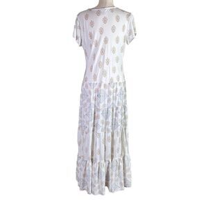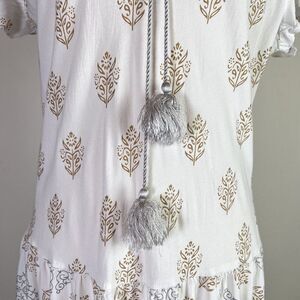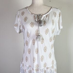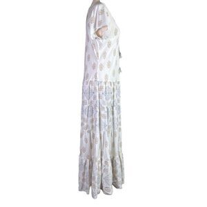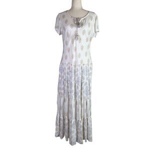 Sundance Maxi Dress Short Sleeve Size Large White Cream Tassel Tiered Boho
