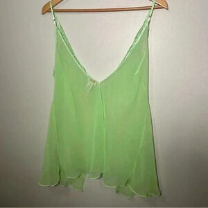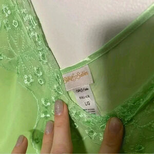 Vintage silk and satin Y2K green mesh slip with open front L