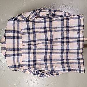 Casual plaid shirt by Carhartt. Features navy and pink and cream pattern. Button-up front with classic collar. Non-smoking home with cat and dogs. No rips or stains or holes. Good used condition. See pictures for description and measurements and condition.