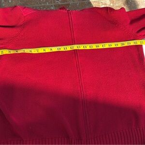 Chic and cozy red cardigan. Features a full zip front. Shoulder sewn epaulettes Ideal for layering.VGC