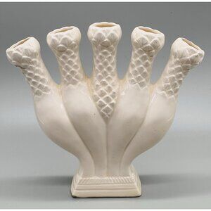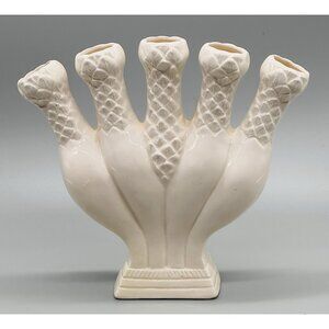 Mid Century Cream Quintal Five Finger Vase Posy Holder Ceramic 7.5 inch