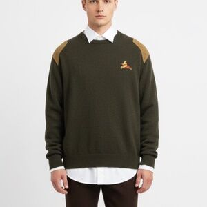 Vtg Rydale UK hunter green wool blend tan suede detail crew neck sweater XXL