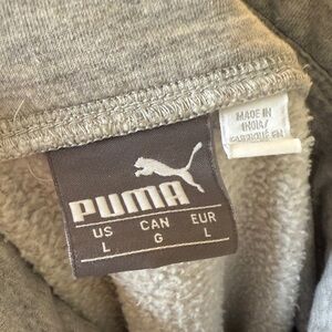 Stylish heather gray sweatshirt with a turtleneck design. Features the iconic Puma logo on the front and sleeve. (Does not have a hood)