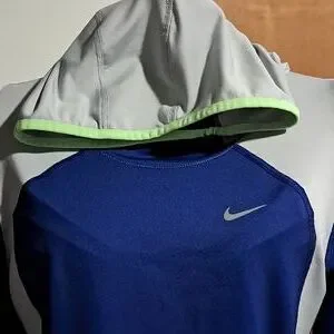 Nike hoodie with a sleek blue and gray design. Features a subtle logo on the chest.