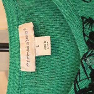 Christopher & Banks Green Turtle Print Cardigan