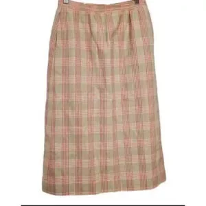 VTG Pendleton Skirt Vintage Sz 12 Wool Plaid Pencil Beige Pink Lined Zip Side