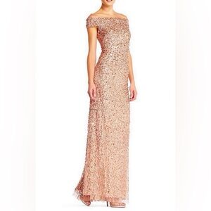 Adrianna Papell Sequin Off The Shoulder Ball Gown Evening Dress Sz 2