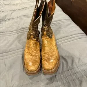 Lucchese Ostrich Boots Brown and Tan Western Cowboy Boots