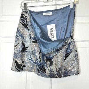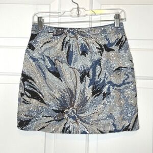 12th Tribe NWT Sequin Mini Skirt Blue Black Floral Party Cocktail Women's Size S