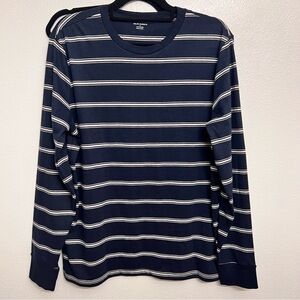 Old Navy Men's Blue and White Striped Long Sleeve Tee
