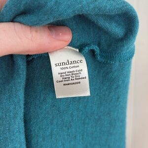 Sundance Henley Sweater Top Teal Blue Crochet Cuffs Boho Women’s Size Medium