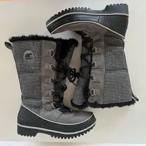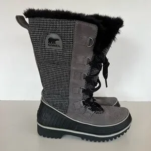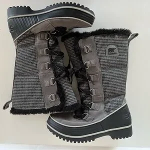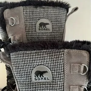 Sorel Women's Tivoli Mid-Calf Quarry Black Houndstooth Snow Winter Boots, size 7