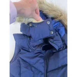 Banana Republic Faux Fur Puffer Quilted Winter Vest Blue Size Small