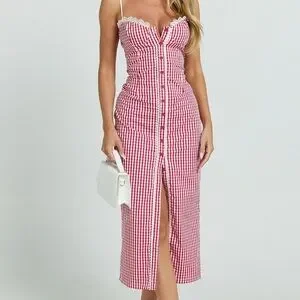 Showpo Red and White Gingham Midi Dress