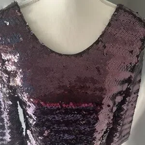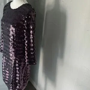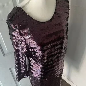 Dazzle in this sparkling purple dress. Long sleeves add elegance. Perfect for evening events.