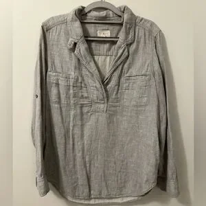 Great preloved condition Lou and Grey Top in a size medium. Stylish heathered gray blouse with V-neck. Features dual chest pockets. Ideal for casual wear.