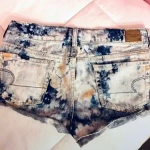 Pair of badass acid wash shorts—guarantee you won't see any other like them! Calling lovers of low-rise, lovers of the “short shorts” look, lovers of tie-dye. My favorite part is the subtle orange color 🎨